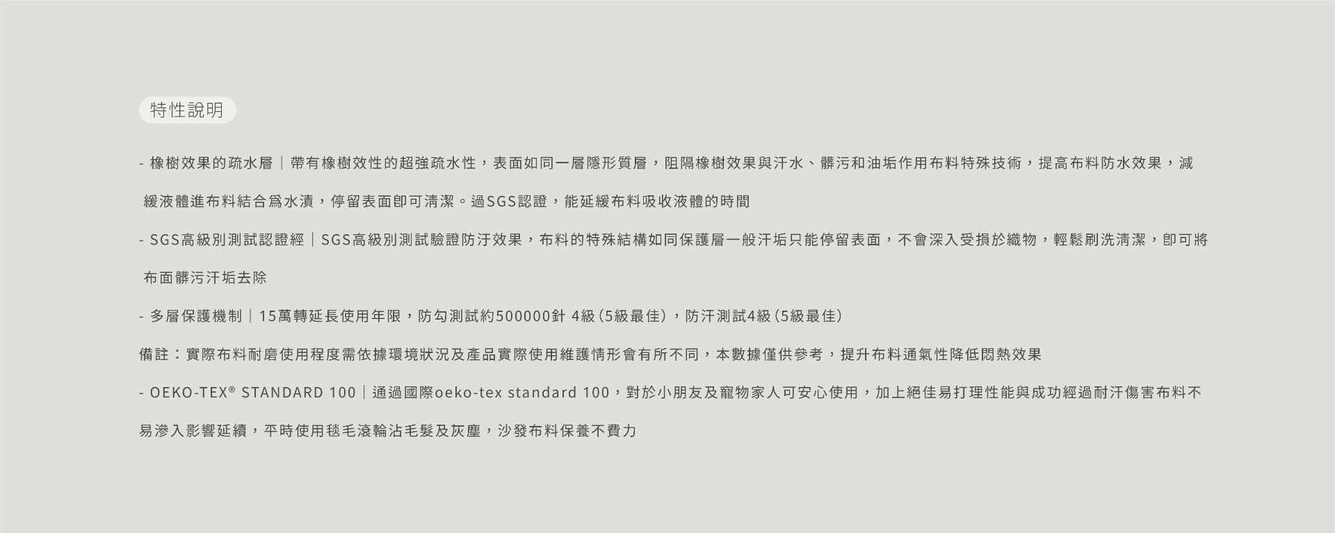 防潑水 防污 耐磨 親膚